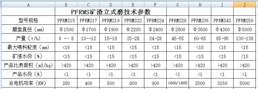二、礦渣立式磨規(guī)格和主要技術(shù)參數(shù)